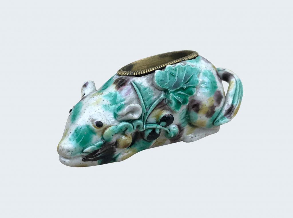 Ecureuil décoré dans les émaux de la famille verte sur biscuit en porcelaine de Chine d’époque Kangxi