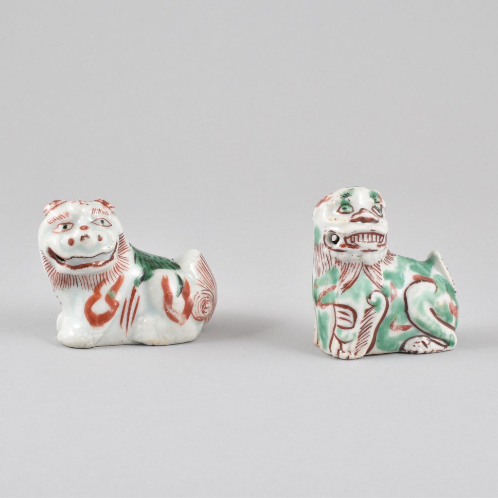 Paire de compte-gouttes en forme de lions en porcelaine de Chine d’époque Kangxi