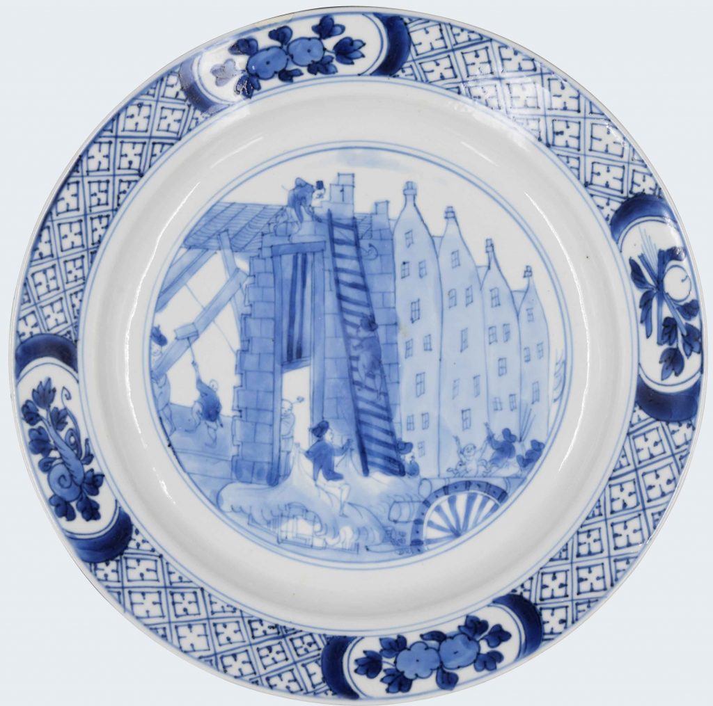 Assiette à décor « Rotterdam Riots » en porcelaine de Chine d’époque Kangxi