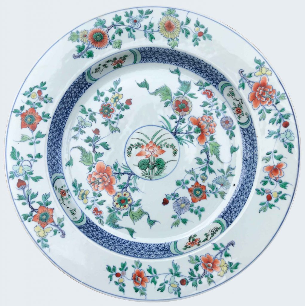 Très grand plat à décor « doucai » en porcelaine de Chine d’époque Kangxi