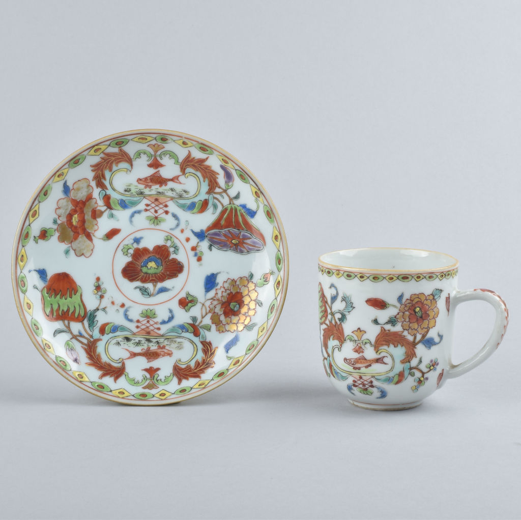 Tasse et sous-tasse à décor « Madame de Pompadour » en porcelaine de Chine d’époque Qianlong