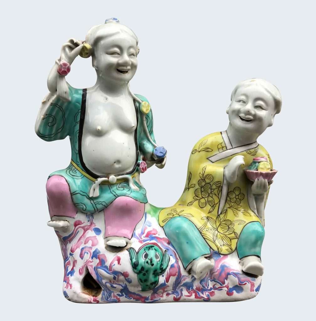 Grand groupe représentant les Hehe Erxian en porcelaine de Chine d’époque Qianlong