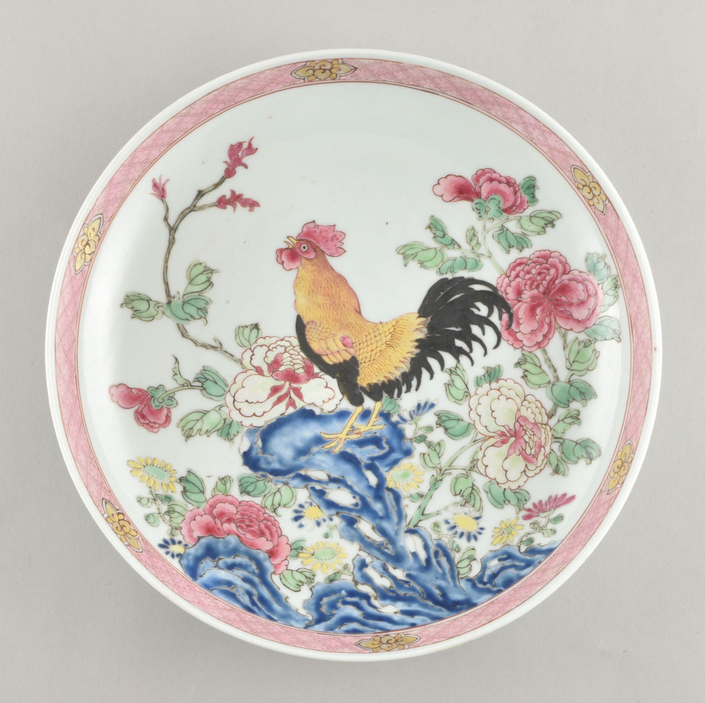 Coupe à décor d’un coq peinte dans les émaux de la famille rose en porcelaine de Chine d’époque Yongzheng