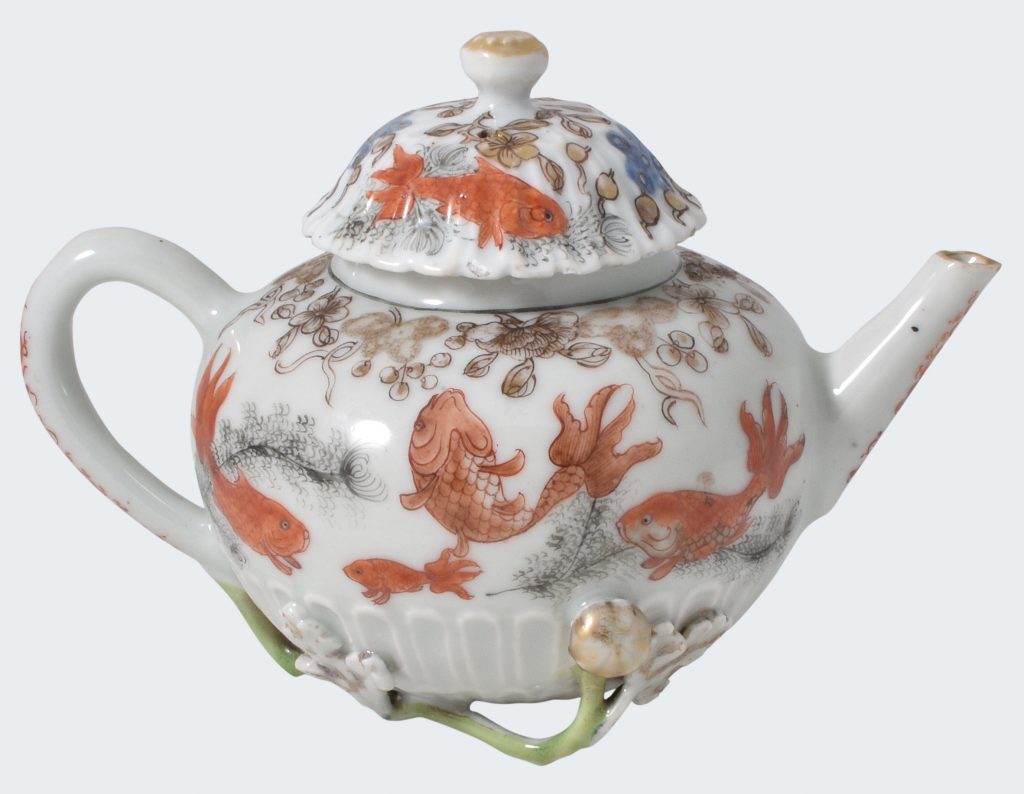 Théière à décor de poissons rouges peinte dans les émaux de la famille rose en porcelaine de Chine d’époque Yongzheng