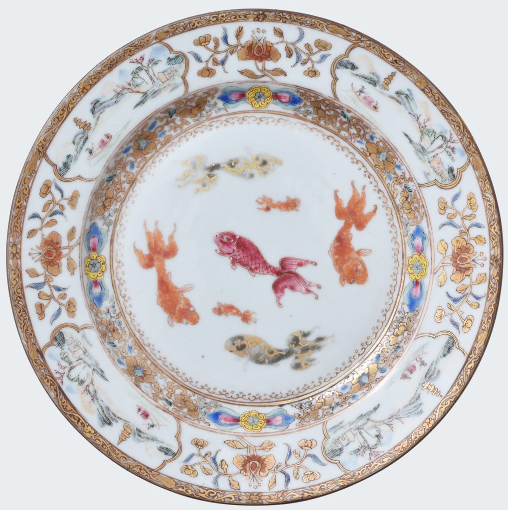Assiette à décor de poissons rouge en porcelaine de Chine d’époque Yongzheng