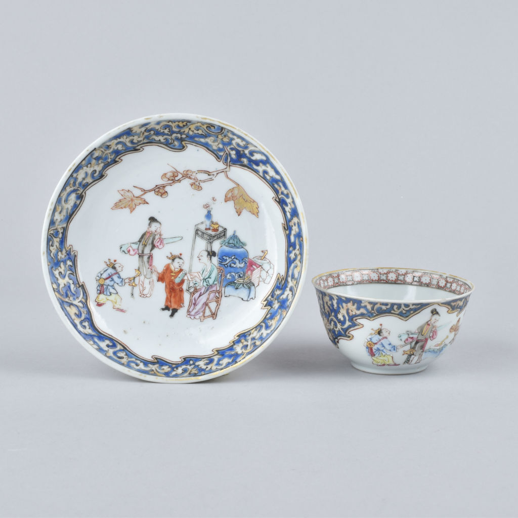 Sorbet et soucoupe à décor de figures provenant du Ca Mau wreck en porcelaine de Chine d’époque Yongzheng